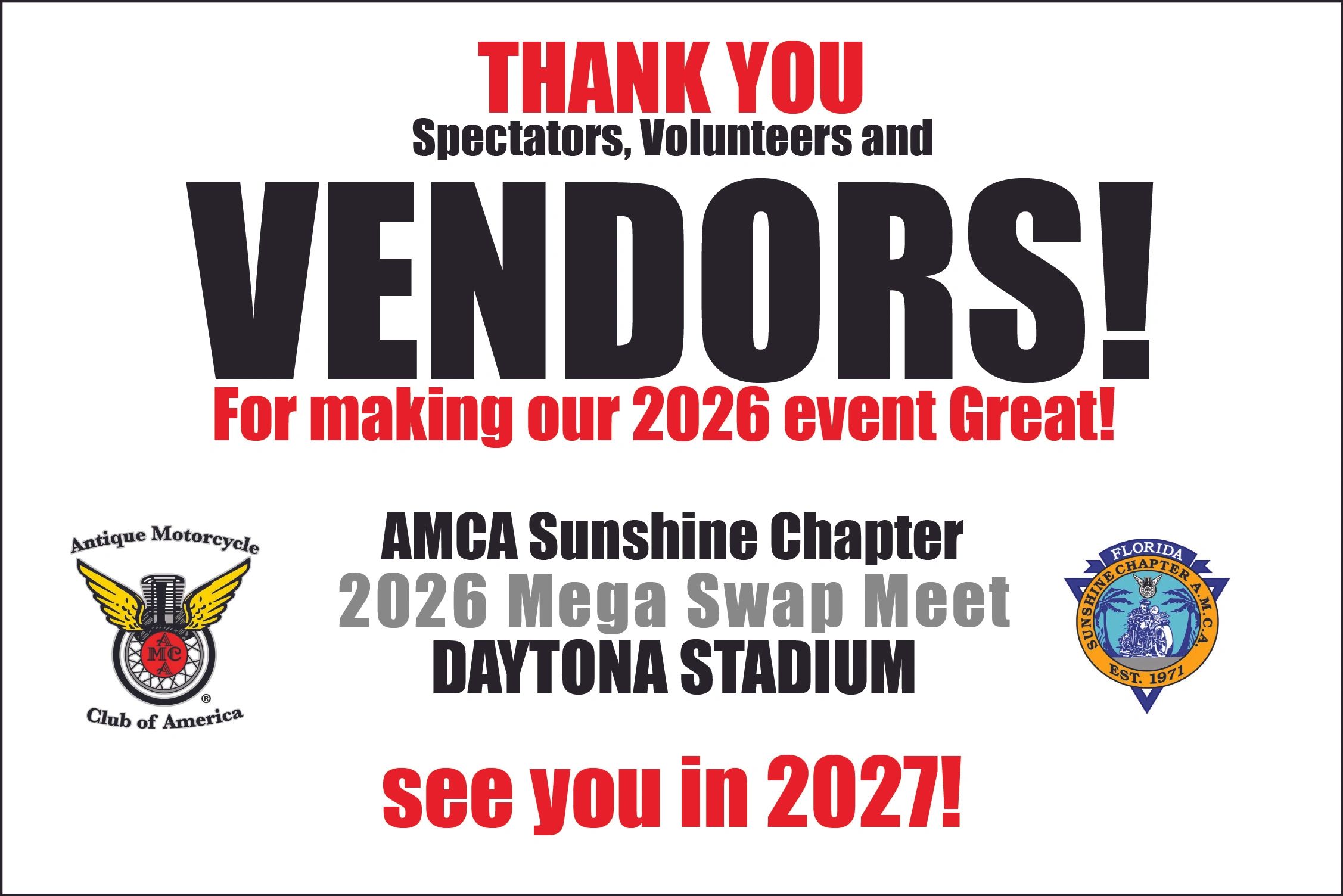 The "Sunshine" Chapter of the Antique Motorcycle Club of America was founded in 1971 as part of the National Antique Motorcycle Club of America.